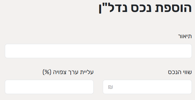 עליית ערך צפויה - בכמה אתם משערים שהנכס יעלה בערכו מדי שנה.
