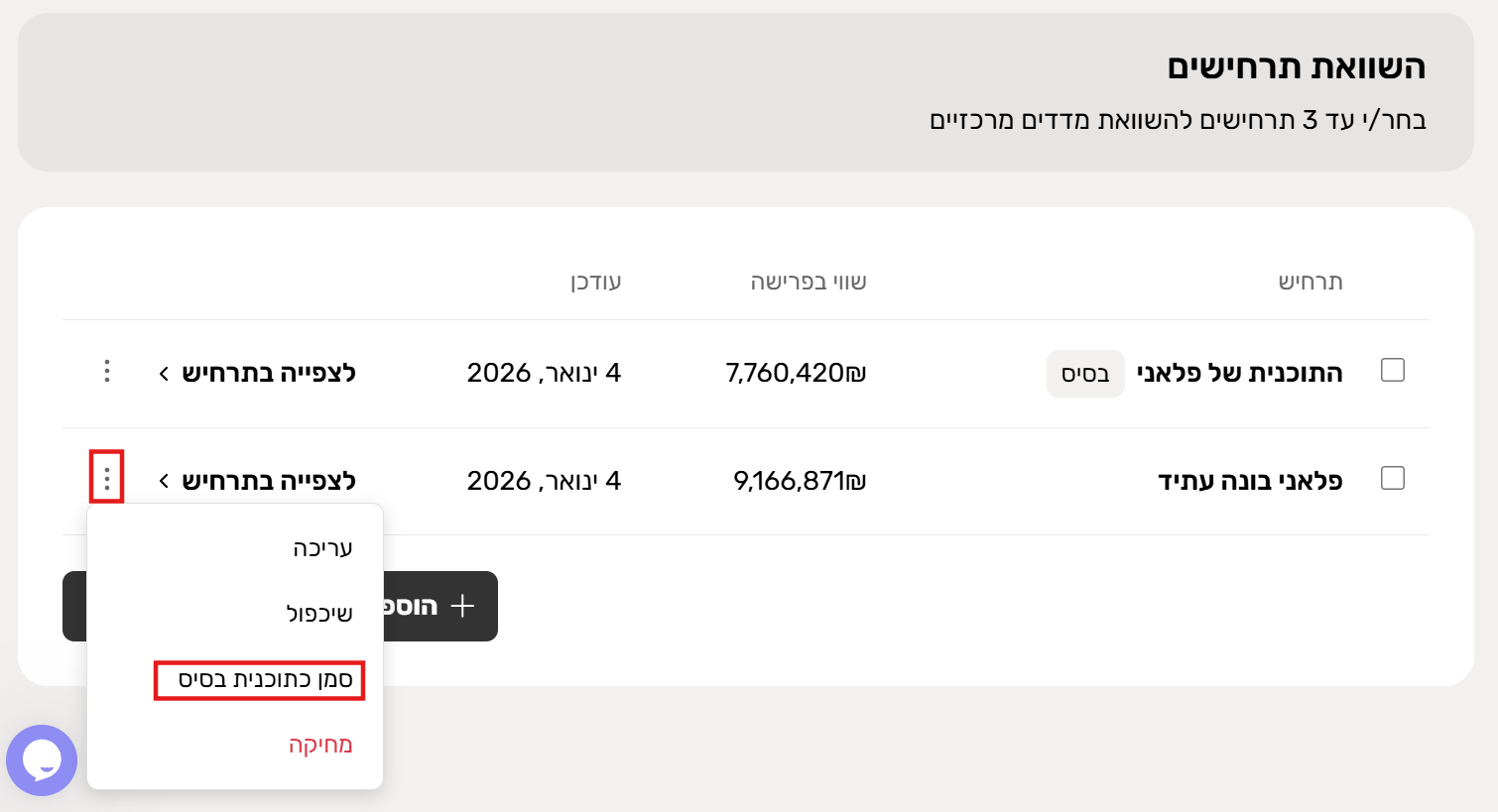 טיפ: מחקו תוכניות ישנות כדי לשמור על סדר. בכל פעם, התפצלו מתוכנית הבסיס, עדכנו ובחרו את התוכנית הטובה ביותר!