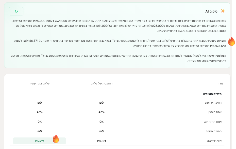 תופיע השוואה בטבלה בין התרחישים ואפשרות לסיכום מילולי של AI!