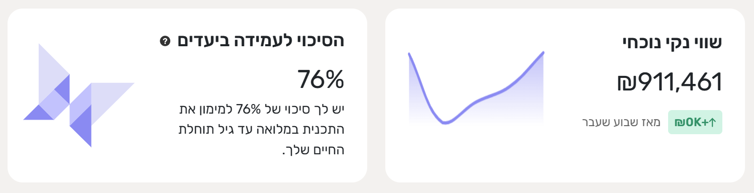 בחלק זה תמצאו 2 מספרים בלבד שמספרים את עיקר הסיפור הפיננסי שלכם:
