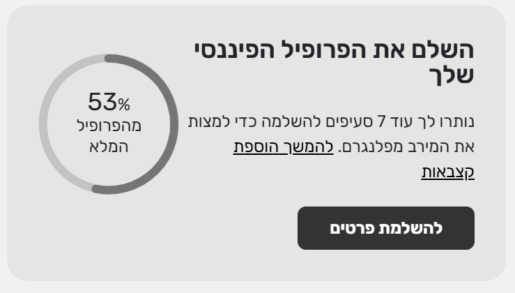 חלק 3 - פערים בהשלמת הפרופיל הפיננסי