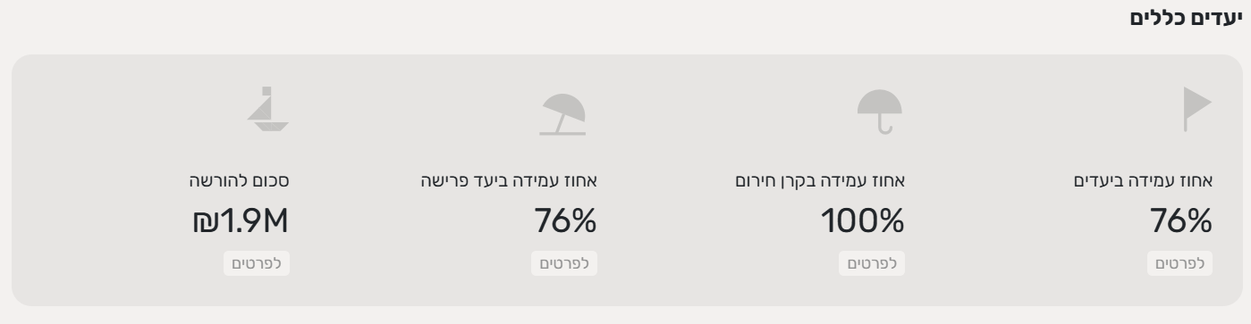 - אחוז עמידה ביעד פרישה - הסיכוי המשוער שתצליחו לפרוש בגיל שהגדרתם.
